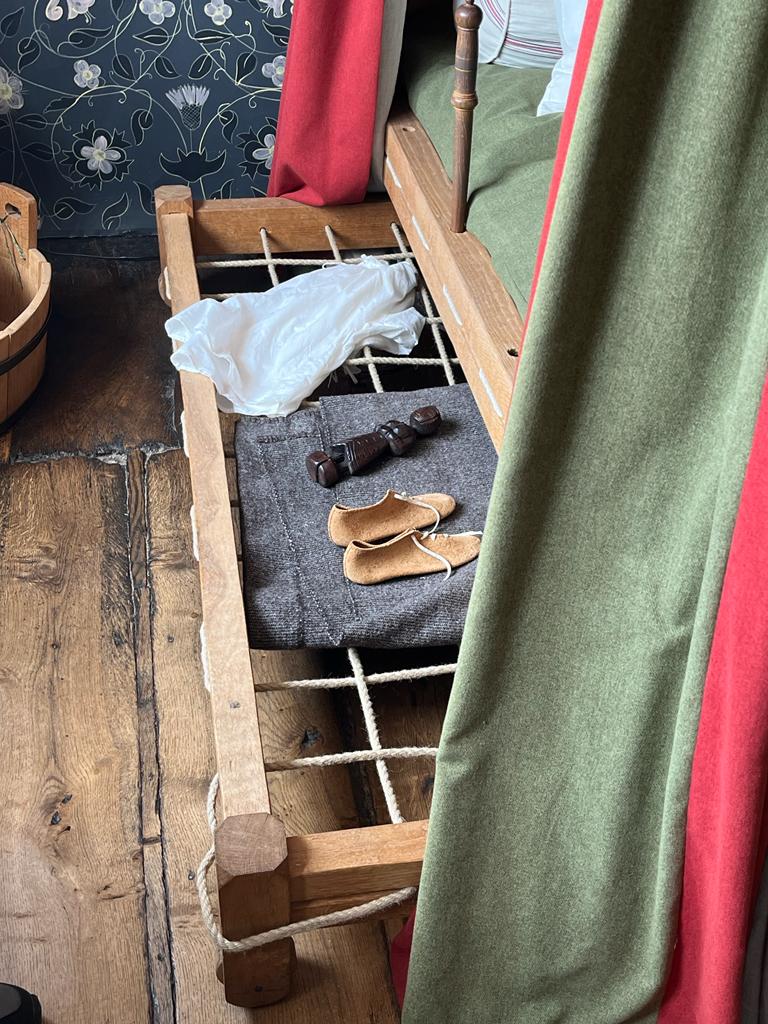 There were two bedrooms for the children – one for the boys and one for the girls. From the age of five William shared a bedroom with his younger brothers Gilbert and Richard. Whilst the room is light, and of a decent size, it contained only one bed that the three boys shared from five years old until they got married. In Tudor times there was much suspicion around demons and spirits, leading the children to sleep sitting upright.